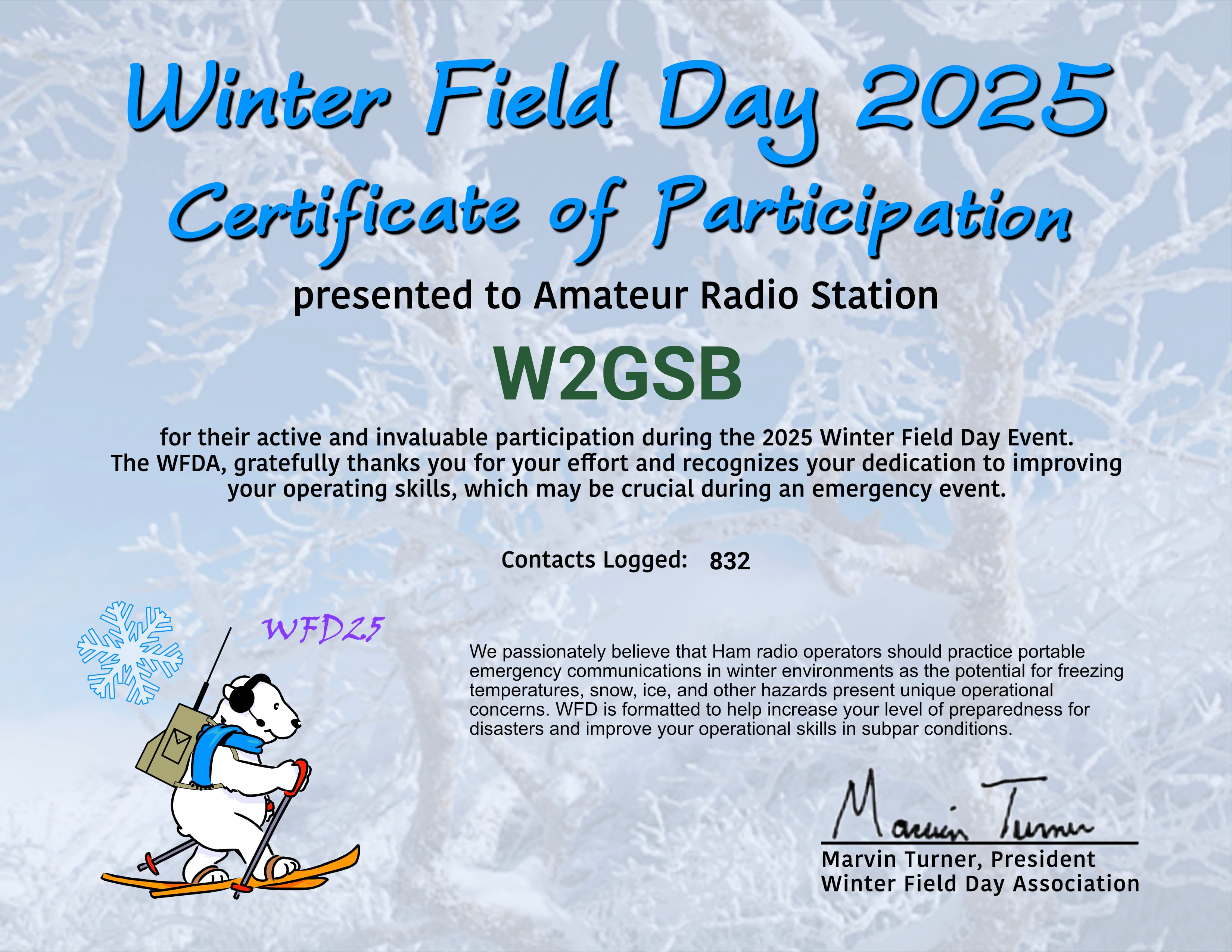 W2GSB Antenna and Trailer setup for Winter Fielday operations. 2025